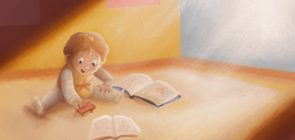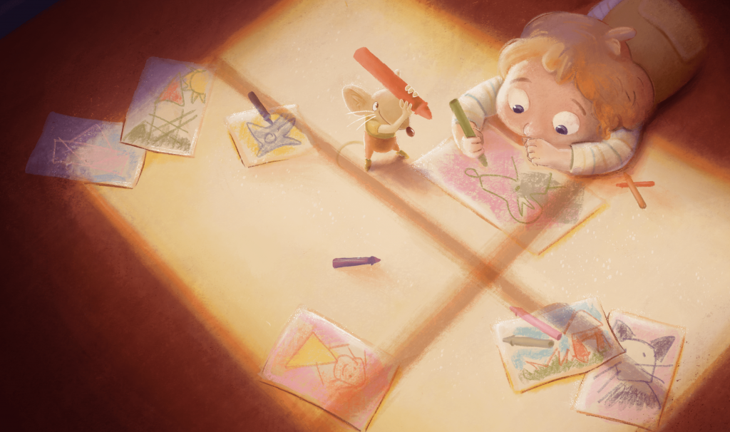 Why does Mau come to life? Well! It turns out that he is a sticker stuck on the wall that, thanks to Nil’s imagination, wakes up to accompany him, thus creating a world of imagination and fun in the child’s mind.